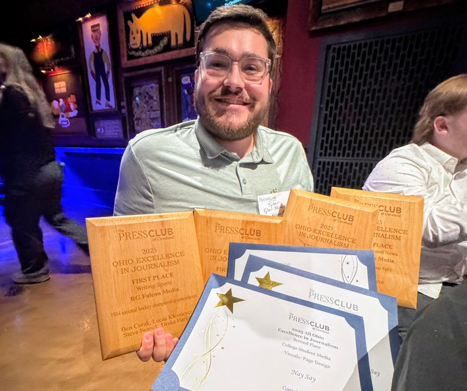 Multiple generations represented BGSU at the Press Club of Cleveland’s Ohio Excellence in Journalism awards event, and several Falcons left with an armful of awards.
